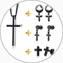 Sterling Silver Black Heart Huggie Hypoallergenic Earrings + Necklace