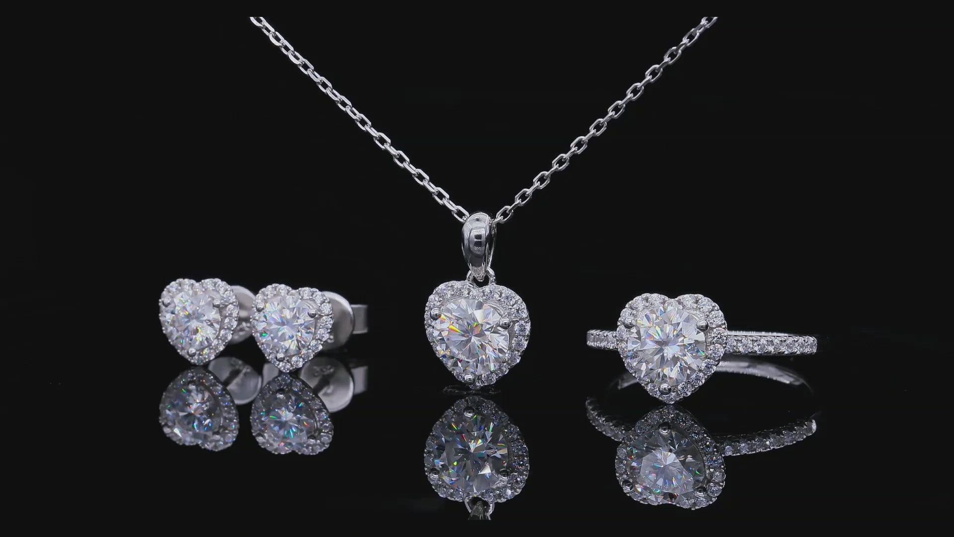 Sterling Silver Angelic Heart Moissanite Earrings + Necklace