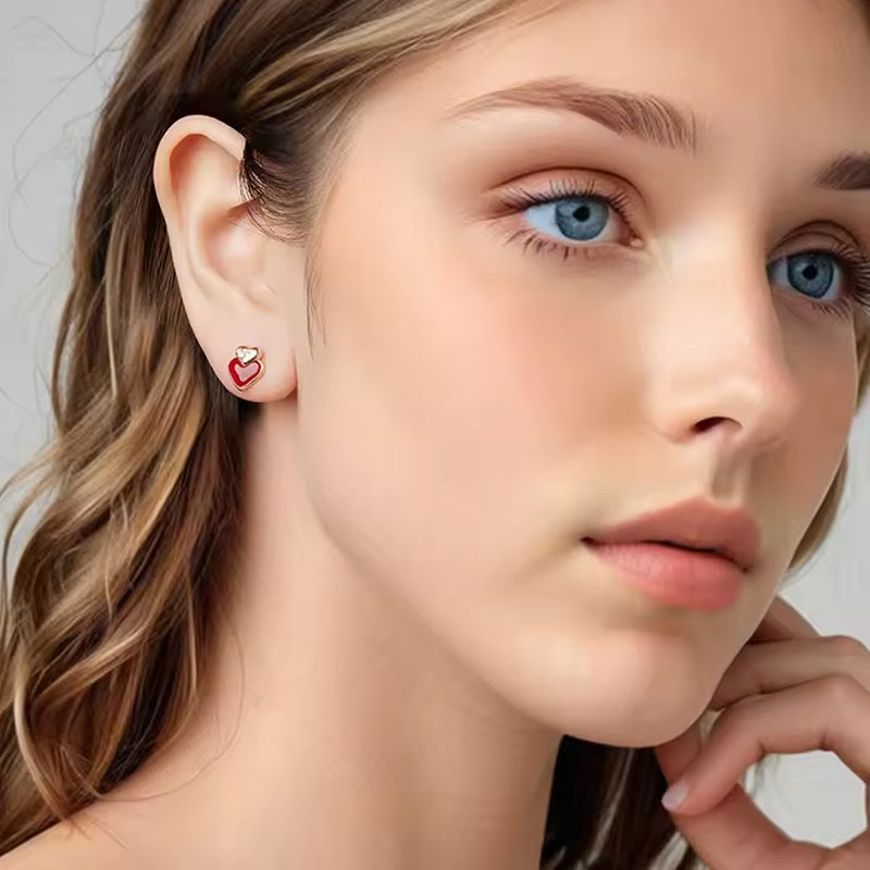Name: | Sterling Silver Angela Red Double Heart Stud Hypoallergenic Earrings |