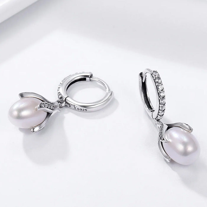 Name: | Sterling Silver Brilliant Pearl Flower Drop Huggie Hypoallergenic Earrings |